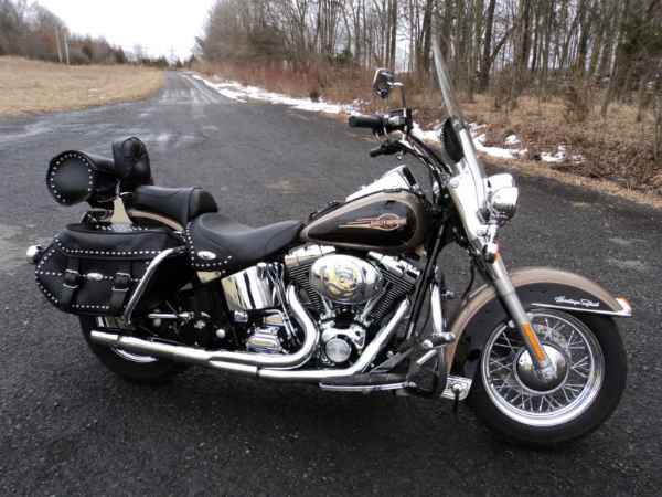 Excellent état , 2005 Harley-Davidson Heritage Softail.Just à temps pour le printemps et votre prochain voyage grande route, il s'agit d'un prêt à rouler 2005 Harley-Davidson Softail Heritage FLSTCI avec seulement 9990 km adultes entraînés choyés! Xtras Chrome agréable et un échappement de performance (rauque pas désagréable) ajouter à l'aspect général excellent. Bien équipé, moteur 1450 cc